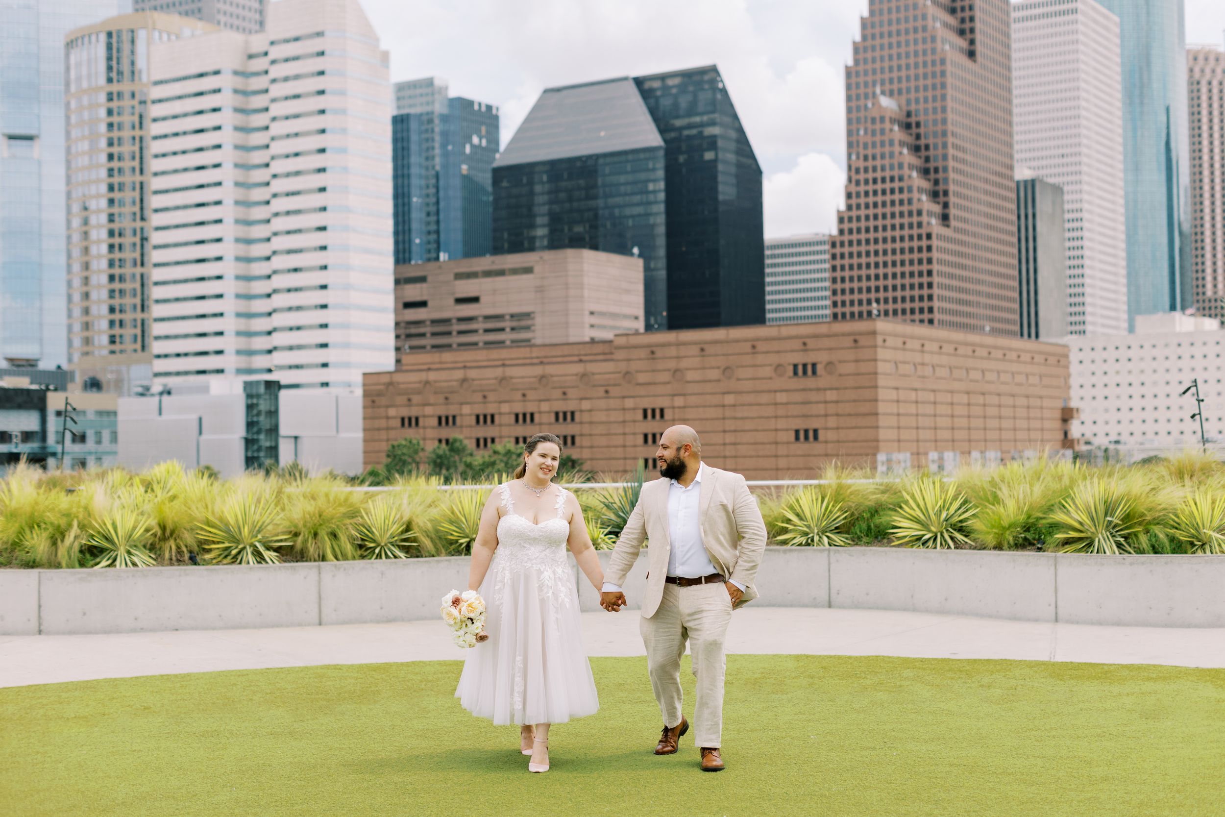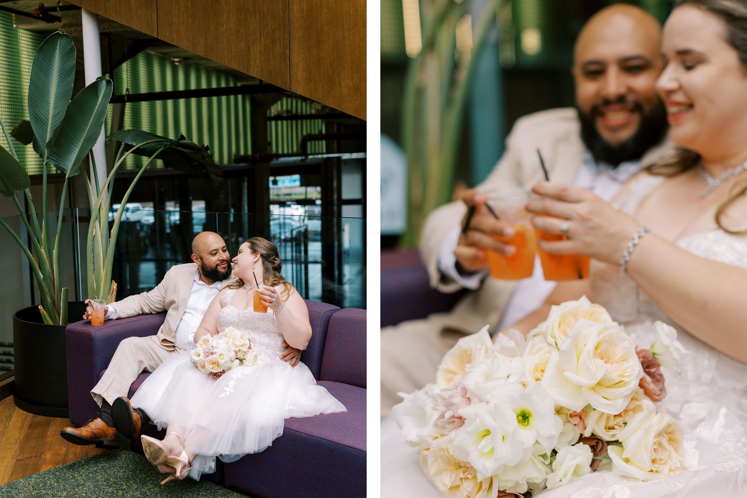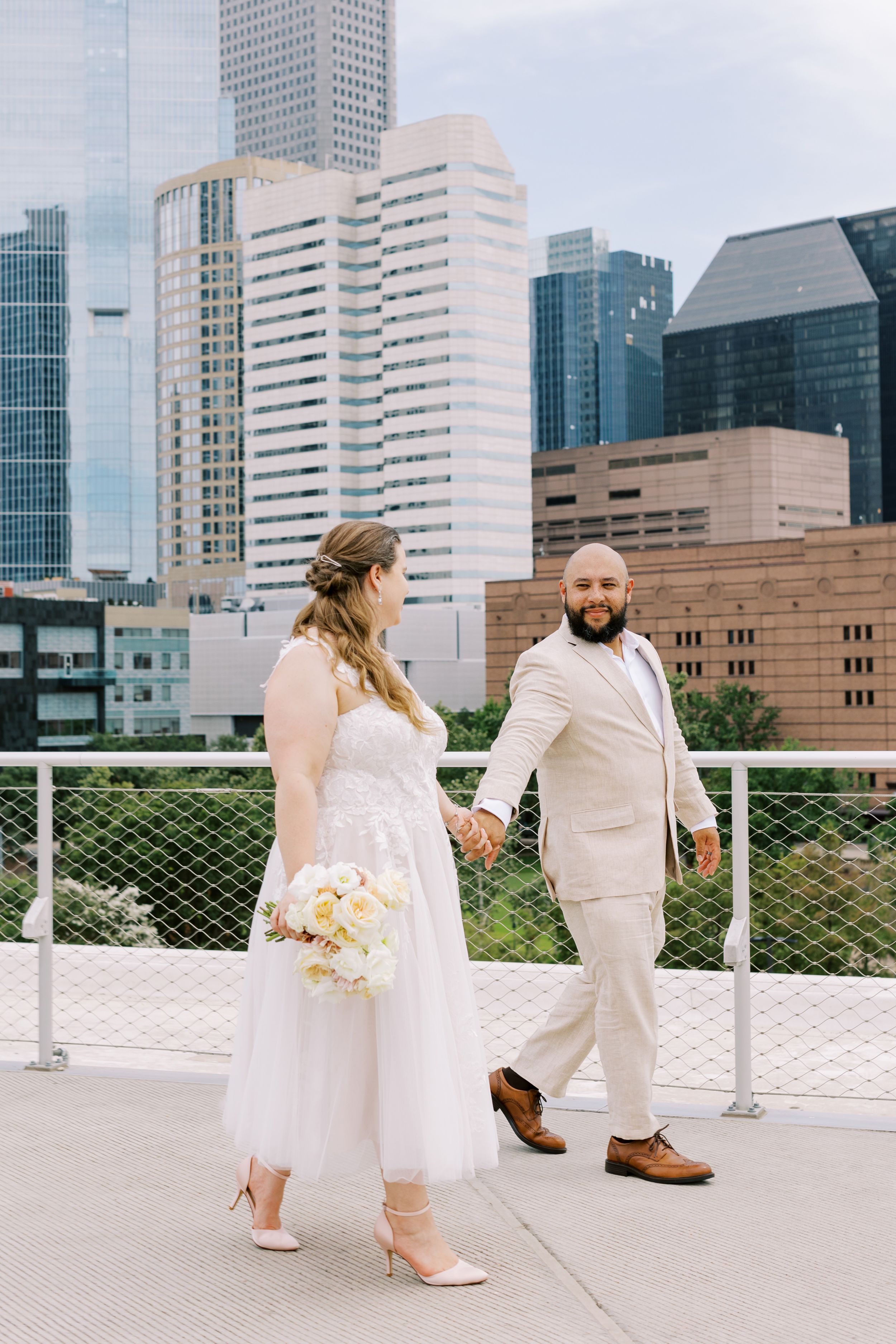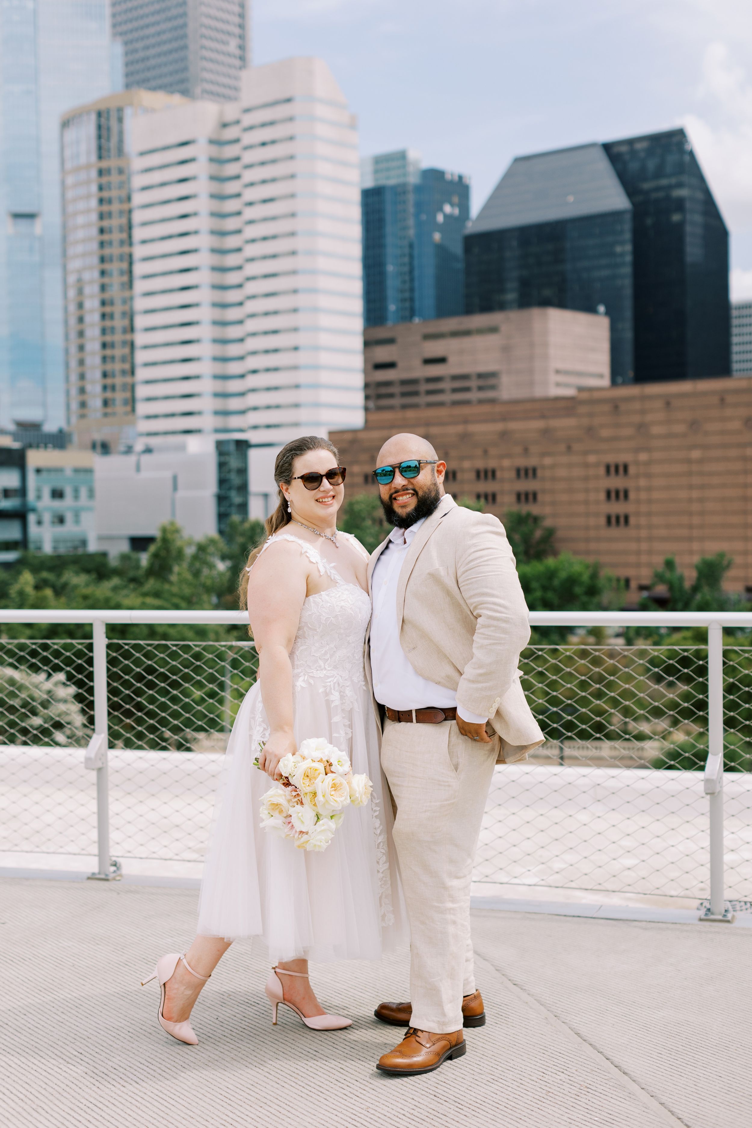 Amanda & Roy were married at the municipal courthouse in downtown Houston on Wednesday, July 3. The ceremony was simple, beautiful, and exactly what the couple envisioned. After their ceremony, we headed to the POST Houston to celebrate and snap some just married portraits. Upon our arrival, the newlyweds toasted with Paloma cocktails and Amanda surprised her hubby with his favorite cake from Treebeard’s! We took advantage of all of the beautiful spaces for the couple’s portraits and finished looking out over the downtown Houston skyline.