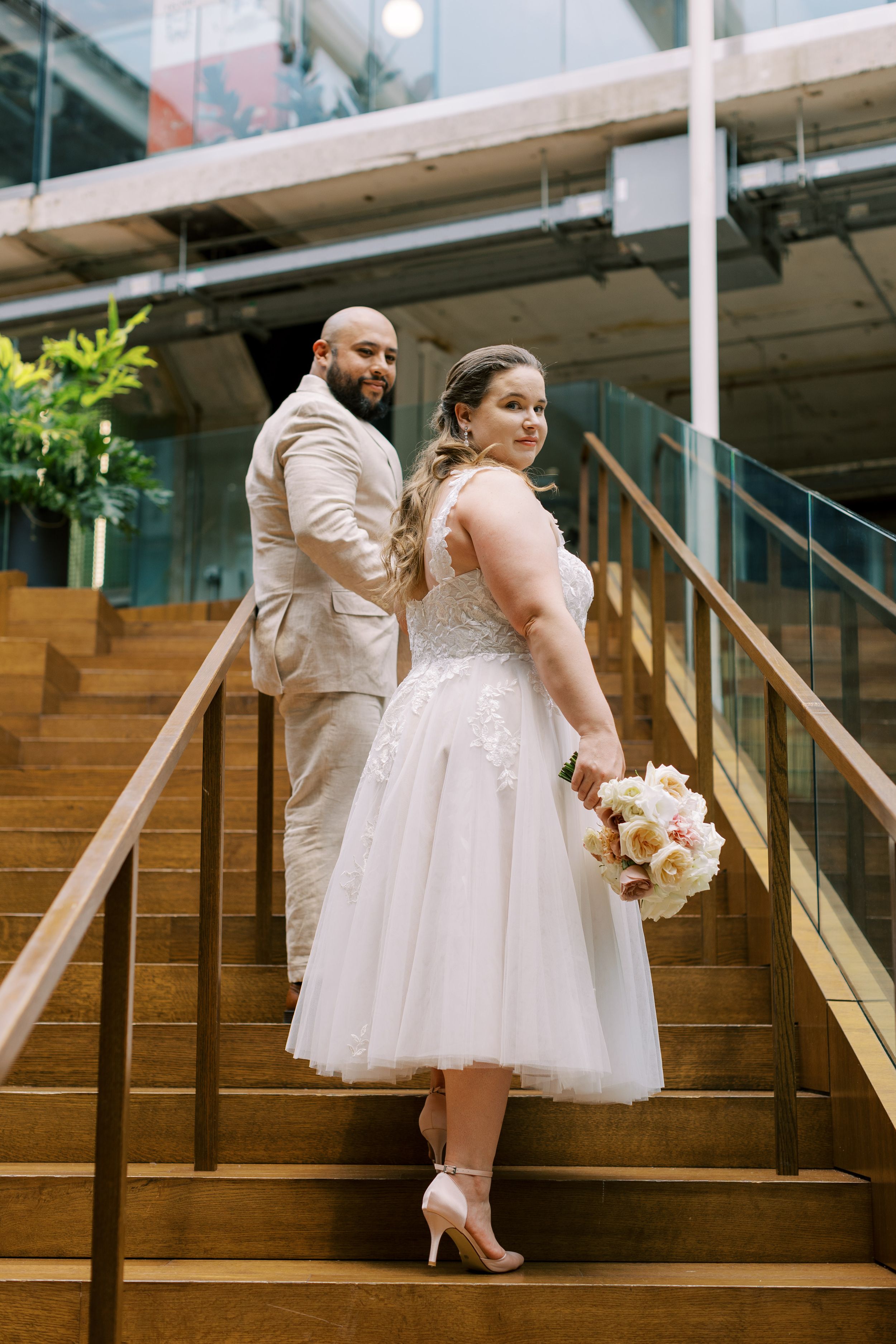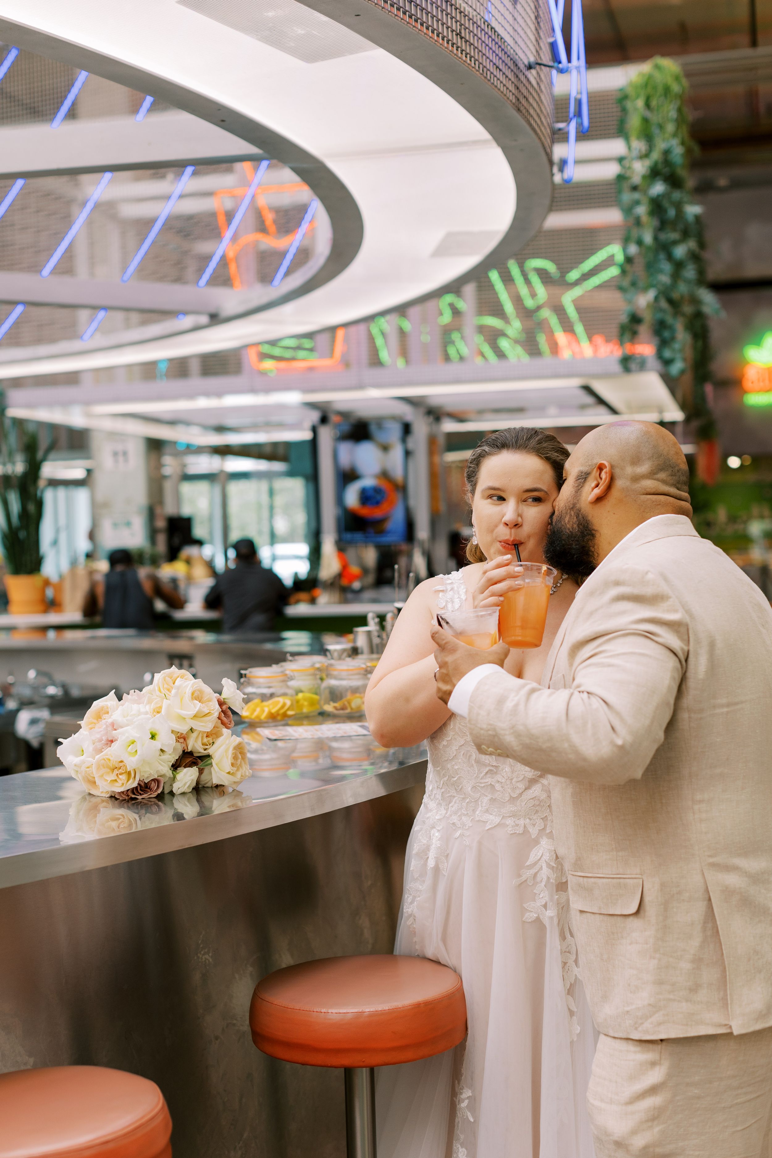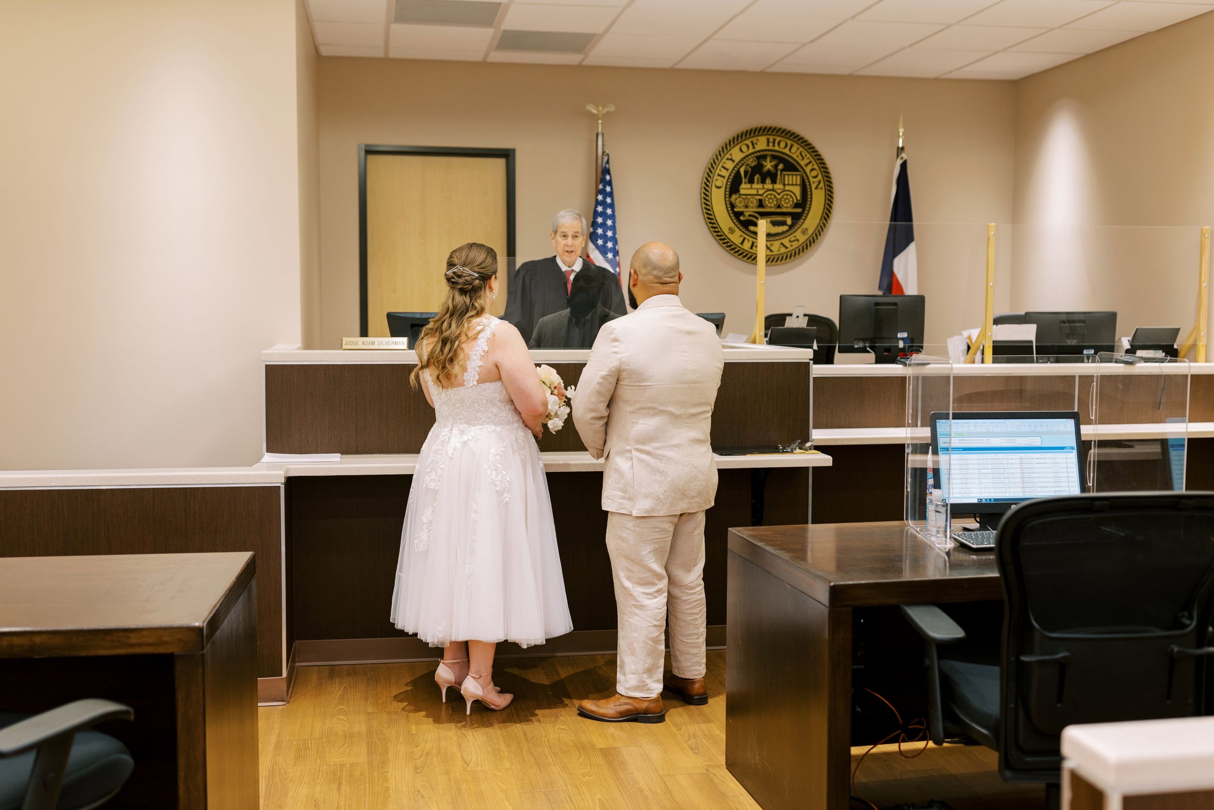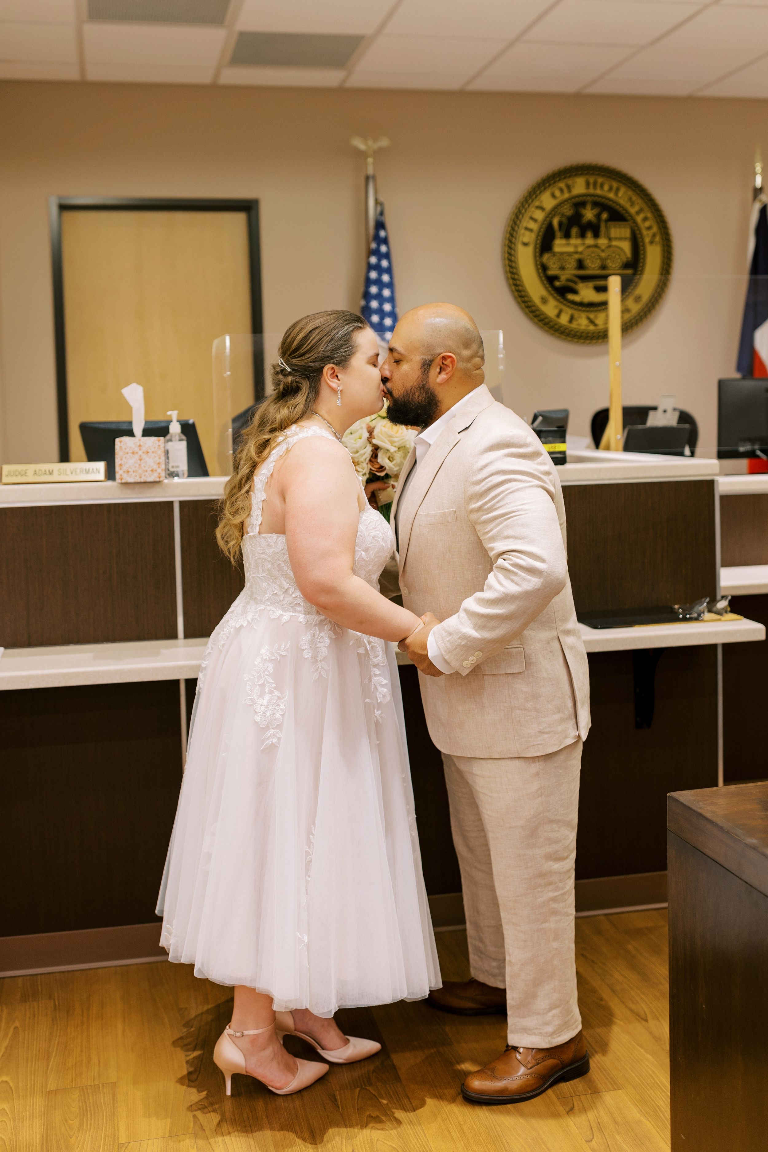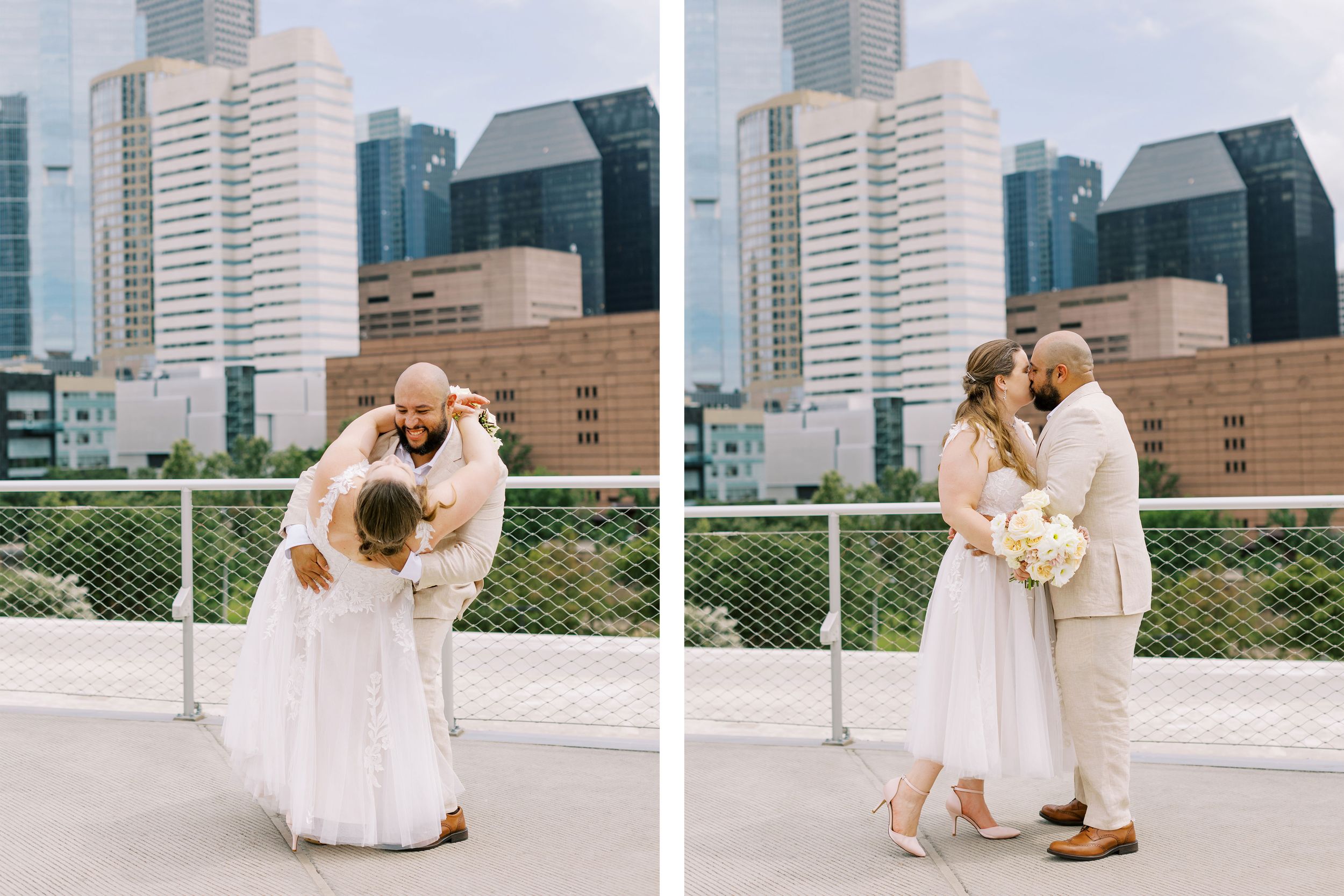 Amanda & Roy were married at the municipal courthouse in downtown Houston on Wednesday, July 3. The ceremony was simple, beautiful, and exactly what the couple envisioned. After their ceremony, we headed to the POST Houston to celebrate and snap some just married portraits. Upon our arrival, the newlyweds toasted with Paloma cocktails and Amanda surprised her hubby with his favorite cake from Treebeard’s! We took advantage of all of the beautiful spaces for the couple’s portraits and finished looking out over the downtown Houston skyline.